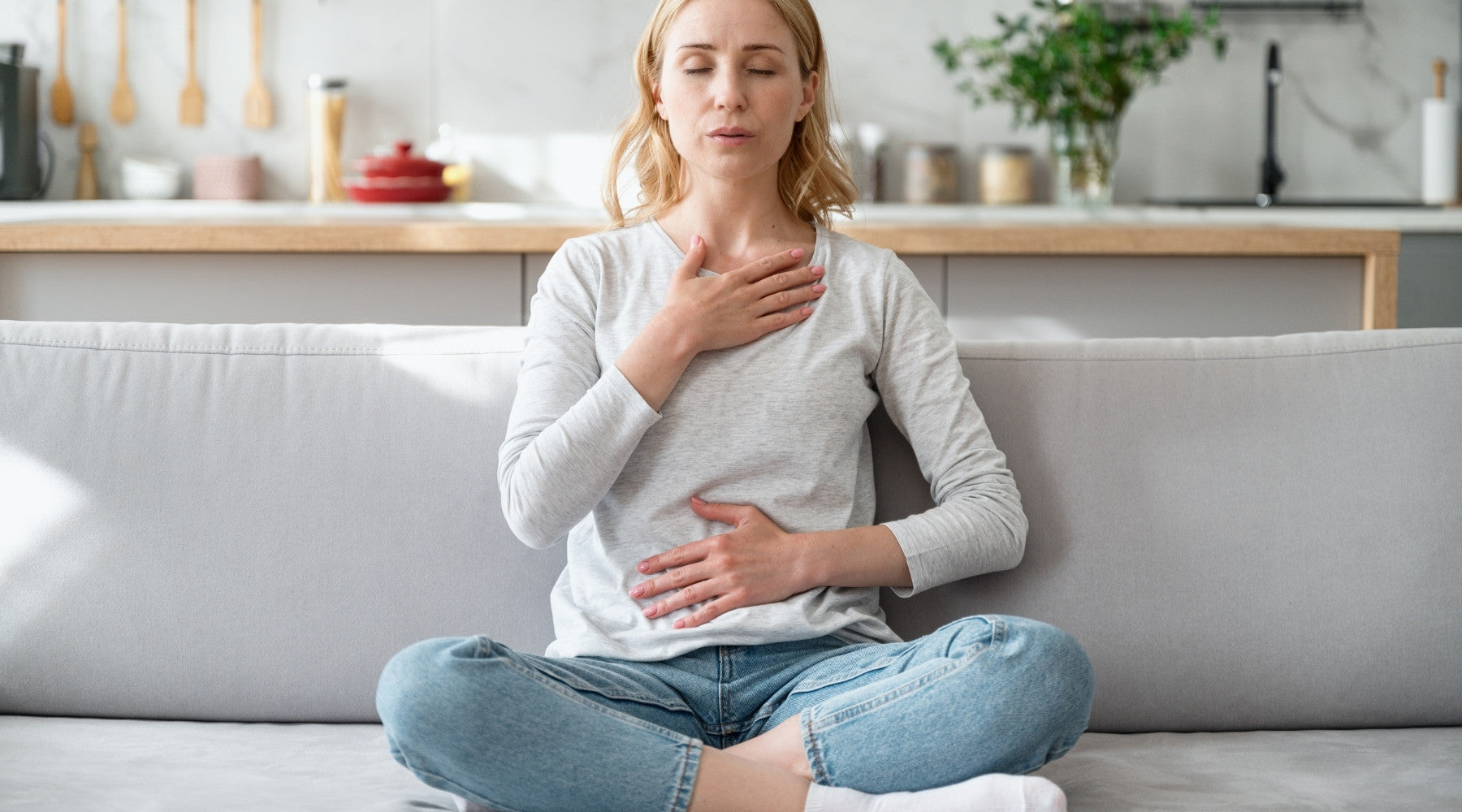 Viele Menschen atmen nur flach in die Brust. Bei der Bauchatmung dagegen weitet sich beim Einatmen der Bauch, nicht der Brustkorb. Das aktiviert gezielt den Parasympathikus.