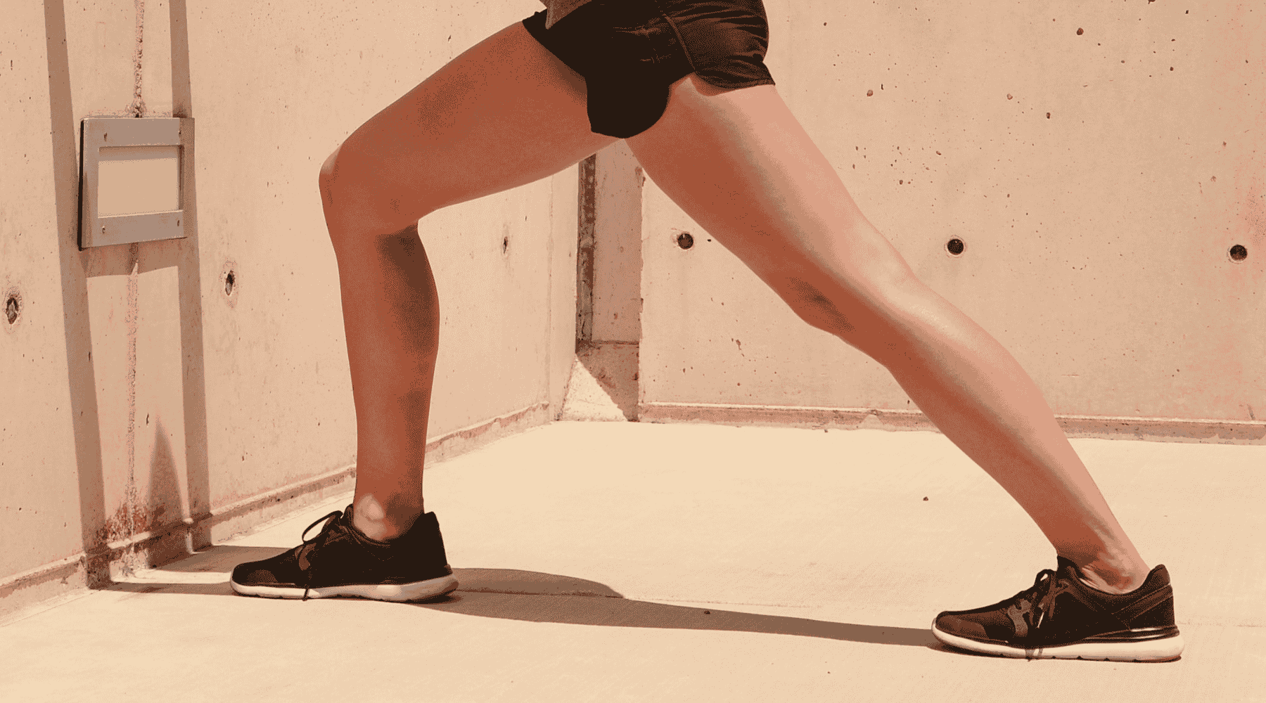 - Stelle das betroffene Bein nach hinten und halte das andere Bein leicht gebeugt.