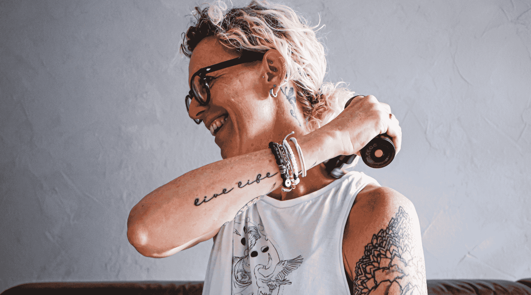 Tipp: Massiere die betroffenen Stellen mit der OrthoGun 3.0 für ca. 30–60 Sekunden pro Muskelgruppe. Die Intensität kannst Du je nach Empfindlichkeit anpassen.